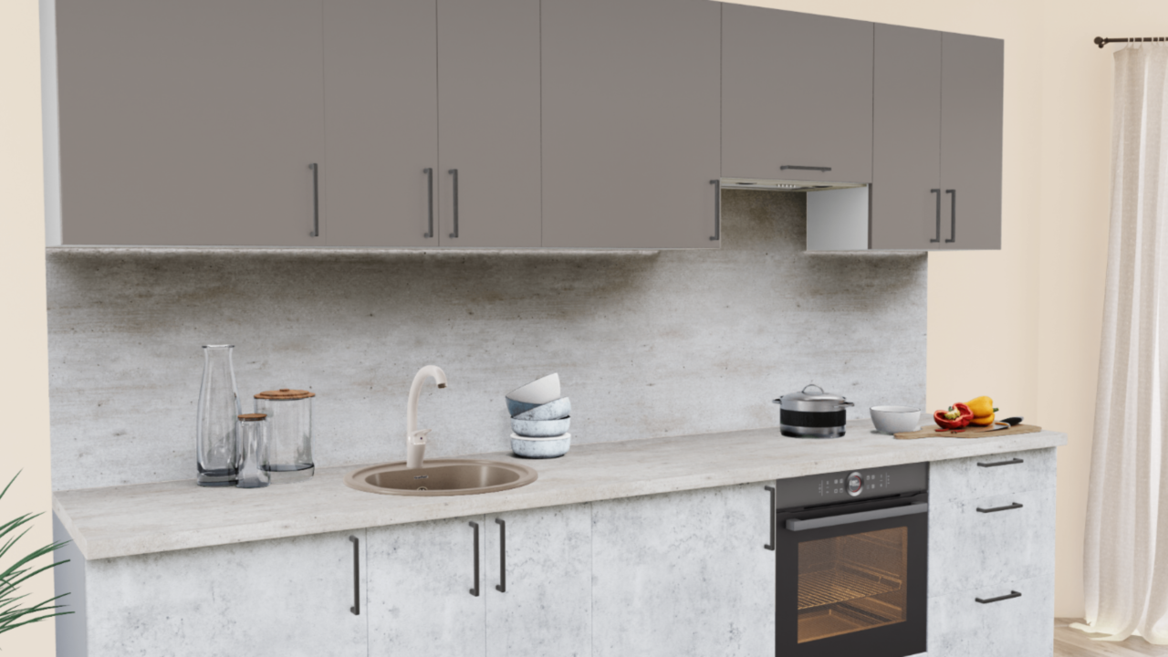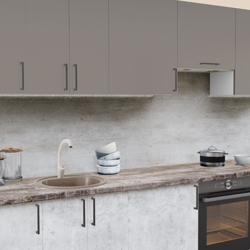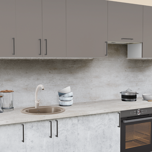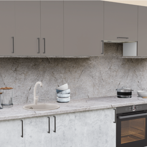 3. Прямая кухня Графит глянец 2129 со столешницей 2047-S Кантри и со стеновой панелью 2046-S Метрополитен.