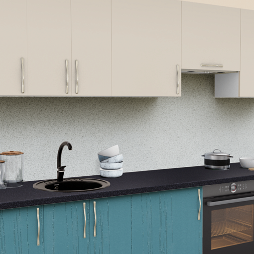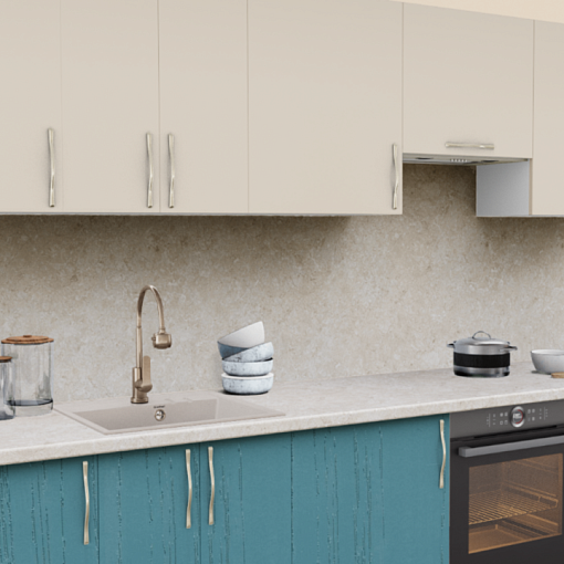 4. Прямая кухня Пастель Латте 1220 со столешницей 4018-S Галактика и со стеновой панелью 4040-S Антарес.