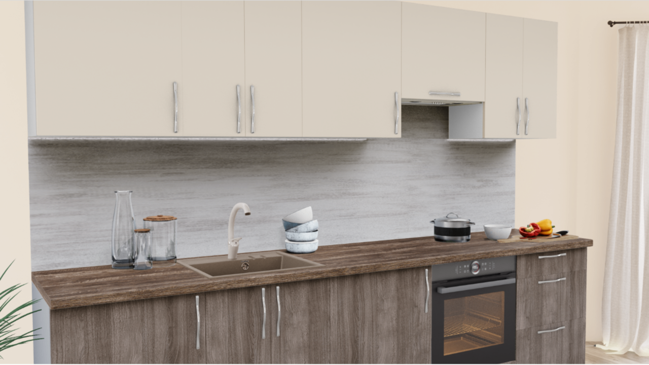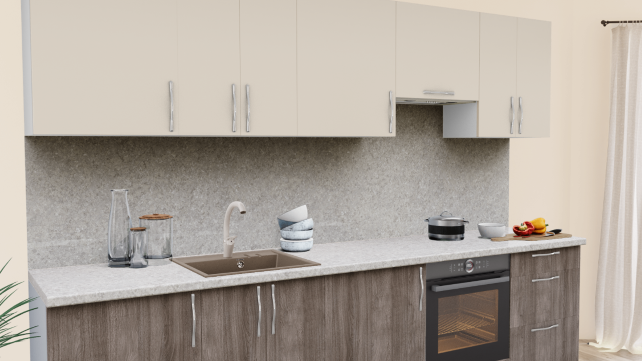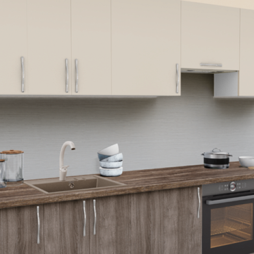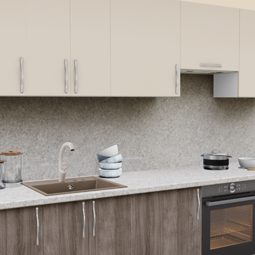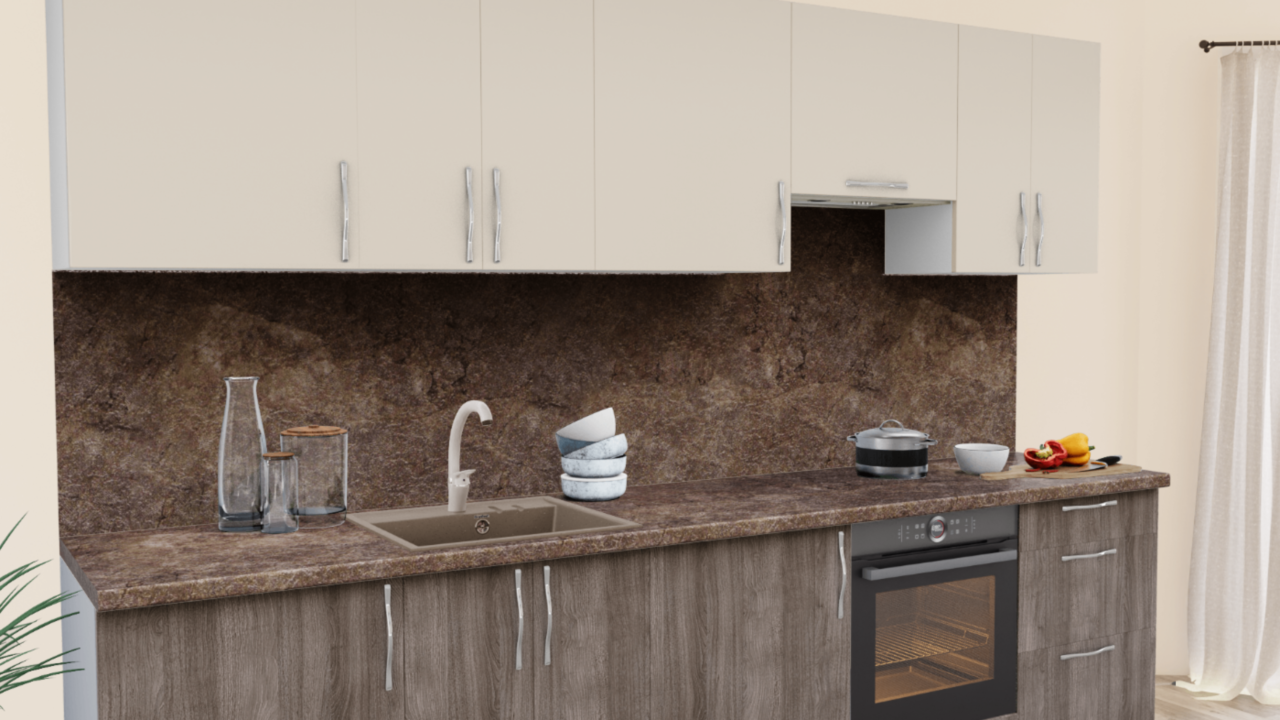 3. Прямая кухня Пастель мокко 1221 со столешницей 7046-S Daily и со стеновой панелью 7046-S Daily.