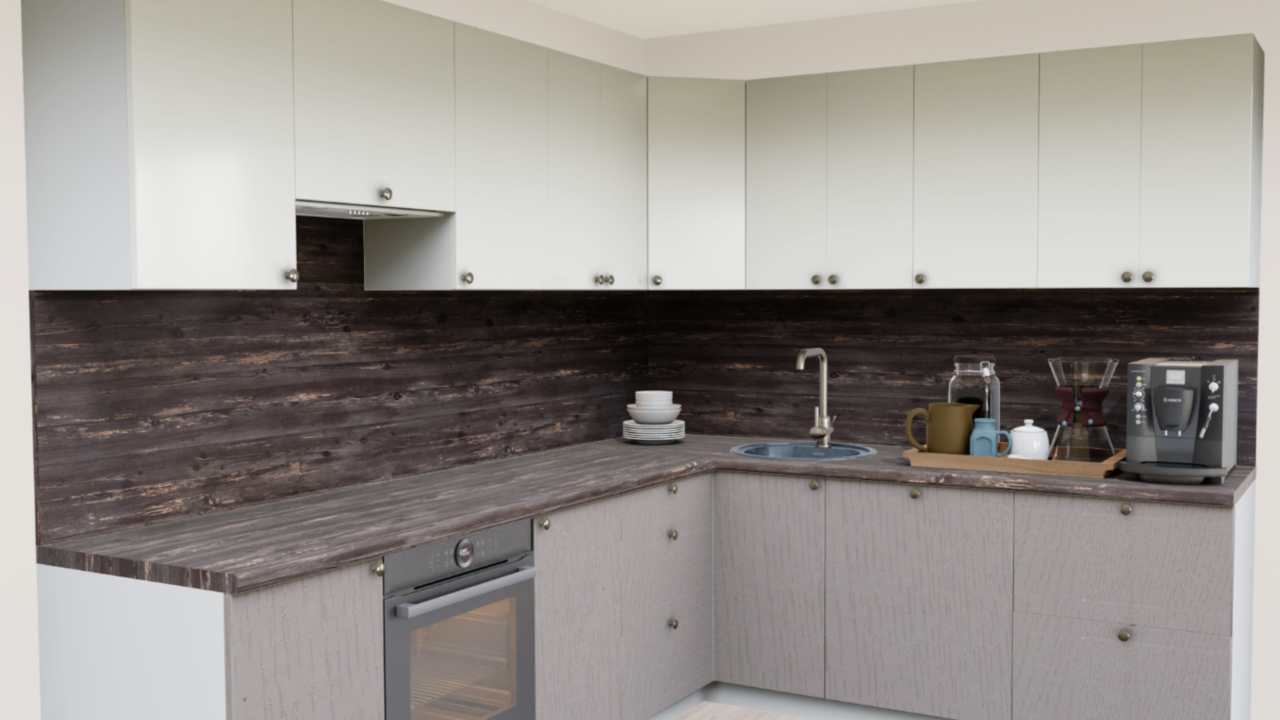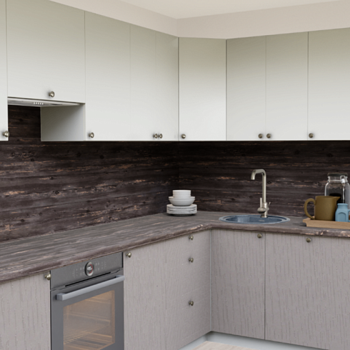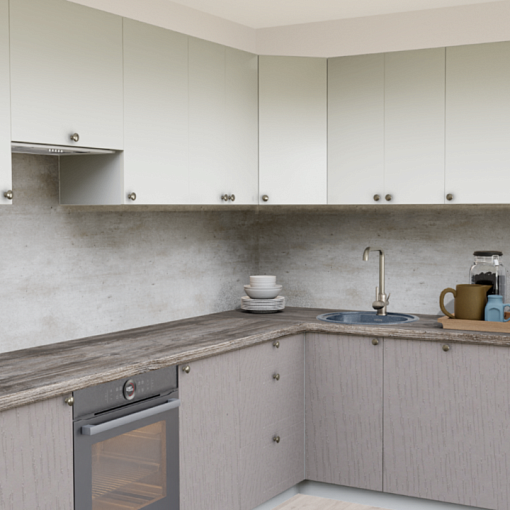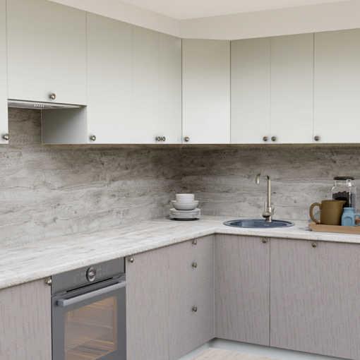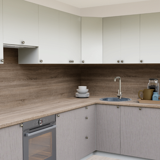 4. Угловая кухня 232-S Дуб Ниагара со столешницей 232-S Дуб Ниагара и со стеновой панелью 232-S Дуб Ниагара.