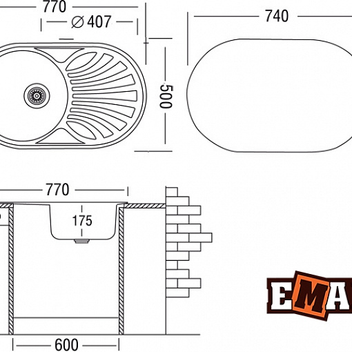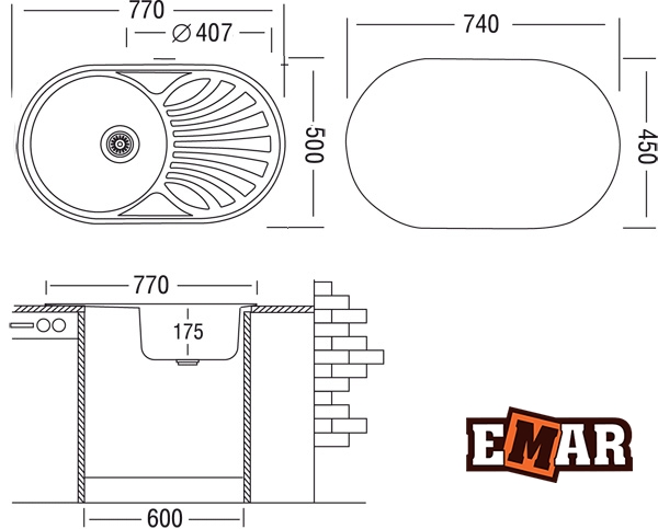 Мойка Емар ЕМ-7750 Мебель для кухни / Мойки для кухни